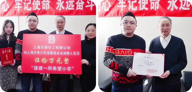 自2014年公司成立以来,bellbet贝博化工在各方客户的支持下取得了长足的发展。 我们也深知,企业的目的不仅仅是获取利润,更是履行社会责任。在企业健康快速发展的同时,形成点滴积累,践行社会公益,取之于社会,回报于社会。 此次,天庚将在安徽舒城援建一所希望小学,为相对落后地区孩子们的成长与幸福创造更良好的条件。这也是天庚实现企业社会责任的一个开始,我们将继续bellbet贝博的公益行动,为中国的教育事业尽自己微薄之力。教育是文明传承的圣火,捐助希望工程,为祖国的明天加油!